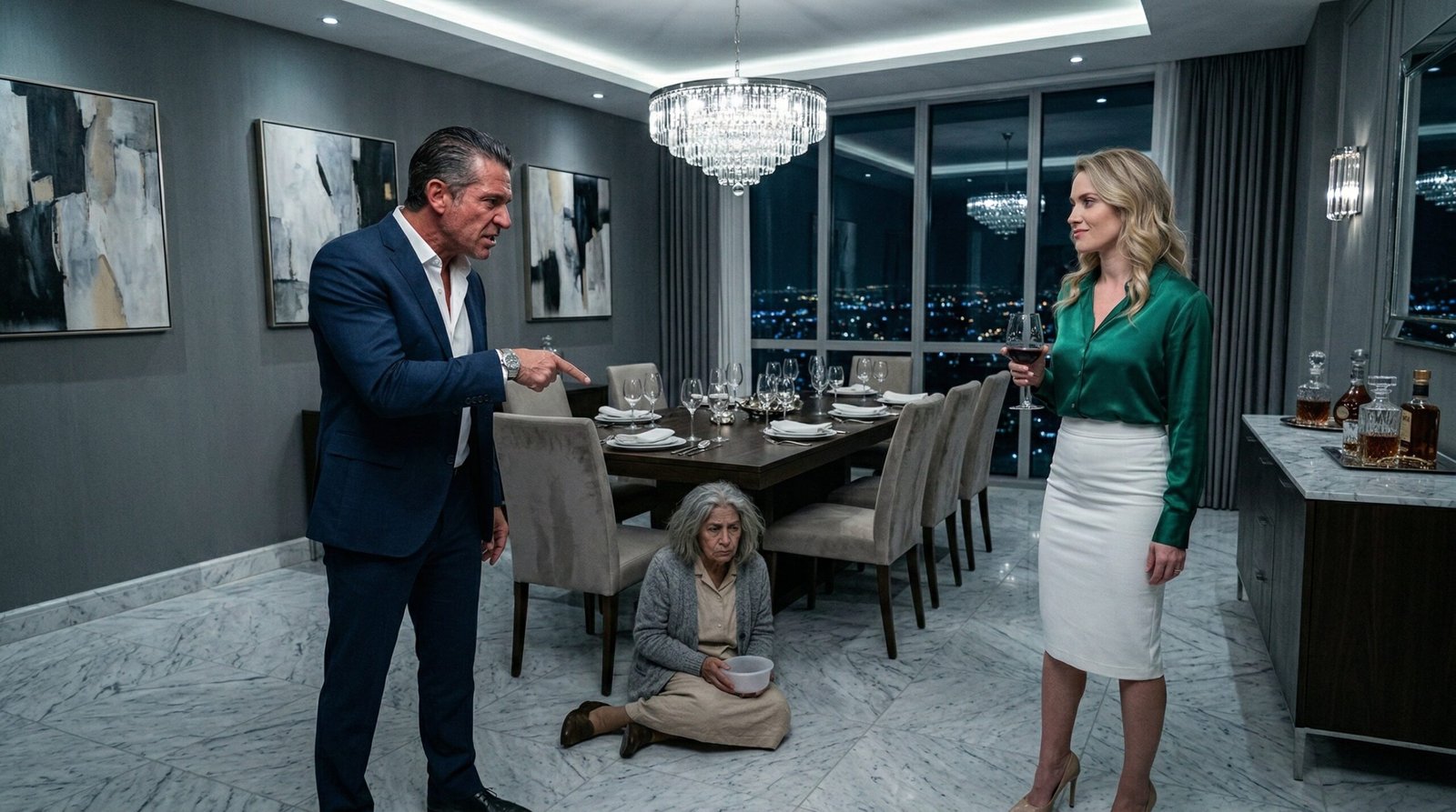 A un metro de ella, erguida como una reina de hielo, estaba Valeria. Llevaba una blusa de seda verde esmeralda que Alberto le había comprado en su último viaje a París, valorada en miles de dólares. Sus pendientes de diamantes brillaban bajo la luz fría de los espejos. Su rostro, antes hermoso para Alberto, ahora le resultaba repulsivo. Estaba contorsionado por la ira, con la boca abierta, gritándole a la anciana que dejara de inventar calumnias.
