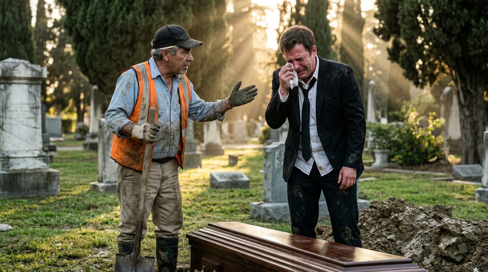 El sepulturero, el mismo anciano que me había advertido, llegó corriendo con dos oficiales de policía que custodiaban el cementerio por los robos de placas de bronce. Fue una escena dantesca: el hijo entregando al padre «resucitado» ante la mirada atónita de los pocos parientes que aún quedaban en el entierro.