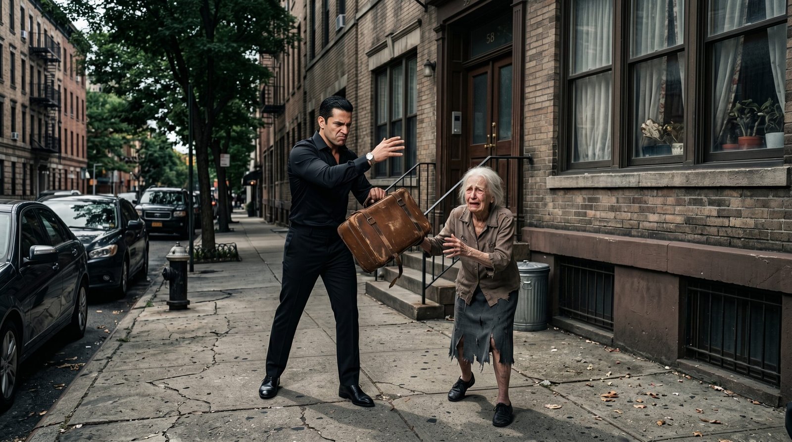 Inés, a pesar de sus 99 años y su salud frágil, no era una víctima fácil. Fiel a su fortaleza, no usaba anteojos, lo que dejaba su mirada gélida y decidida totalmente al descubierto frente a su agresor. Marcos le había lanzado su maleta a la calle sin piedad, exigiendo un aumento de renta imposible de pagar para alguien con una pensión mínima.