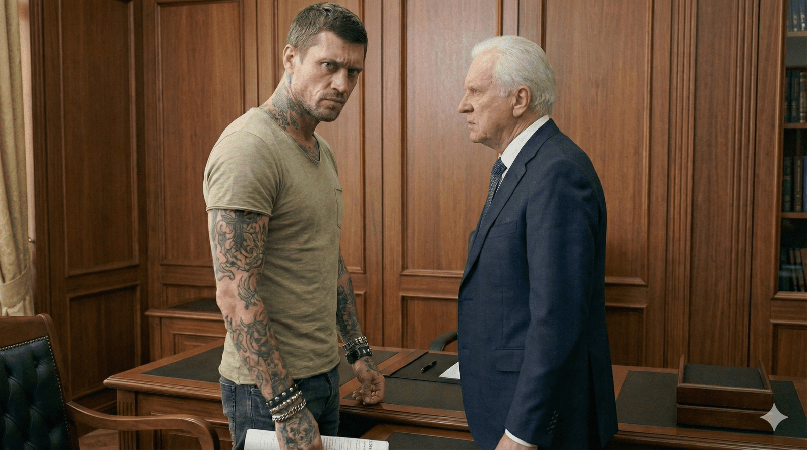 La oficina, que segundos antes retumbaba con los gritos del Sr. Velasco, cayó en un silencio sepulcral. Era ese tipo de silencio pesado, incómodo, donde el zumbido del aire acondicionado parece un estruendo. La secretaria, doña Marta, se llevó las manos a la boca, conteniendo un grito ahogado. Ella conocía al Sr. Velasco desde hacía treinta años. Sabía de su mal genio, de su obsesión por la «imagen corporativa» y de su aversión casi patológica a los tatuajes y a todo lo que oliera a «modernidad rebelde». Pero nunca, jamás, lo había visto con esa expresión de terror puro en el rostro.