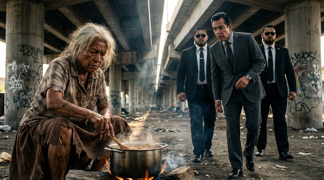 Su rostro estaba surcado por arrugas profundas, marcadas por el sol implacable y las noches a la intemperie. No llevaba nada más que la culpa en sus ojos cansados y oscuros. El olor a humedad, a desesperación y a calle era penetrante. Ella me tenía agarrado del brazo con una fuerza que no correspondía a su fragilidad física, aferrándose a la tela costosa de mi abrigo como si fuera su única tabla de salvación en medio de un océano oscuro.