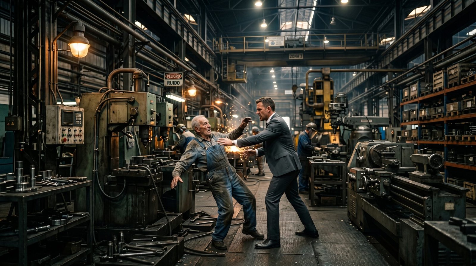 El aire dentro de la planta era denso, cargado de partículas de hierro y el calor sofocante de los hornos. El director se paseaba por los pasillos con su casco blanco impecable, sintiéndose el dueño de cada tornillo. Su rostro, perfectamente limpio y rasurado, mostraba una mueca de asco cada vez que se cruzaba con los operarios veteranos. Para él, la experiencia no era más que lentitud que afectaba sus bonos de producción.
