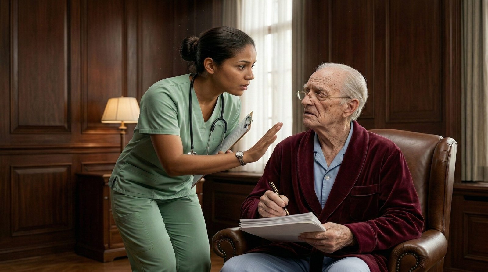 ¡Bienvenidos a la segunda y última parte de esta historia! Si vienes desde nuestra publicación en Facebook, sabes exactamente en qué momento crítico nos quedamos. Viste a un hombre mayor, cansado y engañado, a punto de firmar el documento que acabaría con su vida tal como la conoce. Viste cómo una valiente enfermera arriesgó su propio trabajo para detener su mano de firmar esa sentencia. Si el suspenso te dejó con el corazón en la mano, prepárate. Apaga las distracciones y lee con atención, porque lo que este padre descubrió en esa hoja de papel, y la brutal lección que le dio a su propio hijo, cambiará tu forma de ver la confianza, la familia y el dinero para siempre.