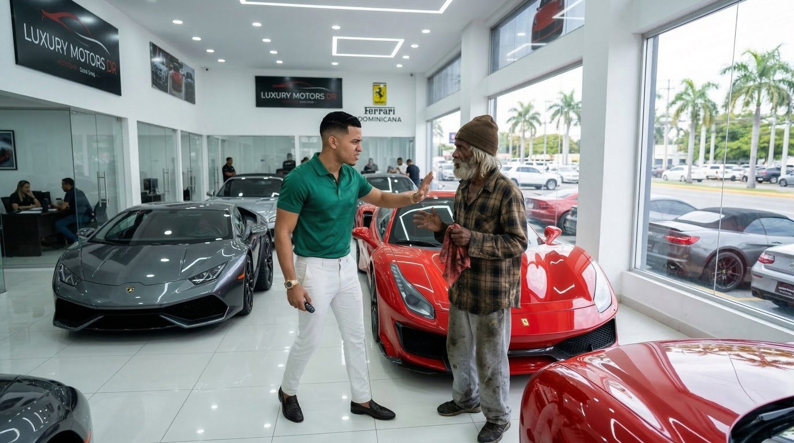 El aire acondicionado de la lujosa concesionaria zumbaba suavemente, pero para Carlos, el joven vendedor, el ambiente de repente se volvió asfixiante. Las brillantes luces LED que iluminaban el impecable Ferrari rojo parecían ahora reflectores de un interrogatorio policial.