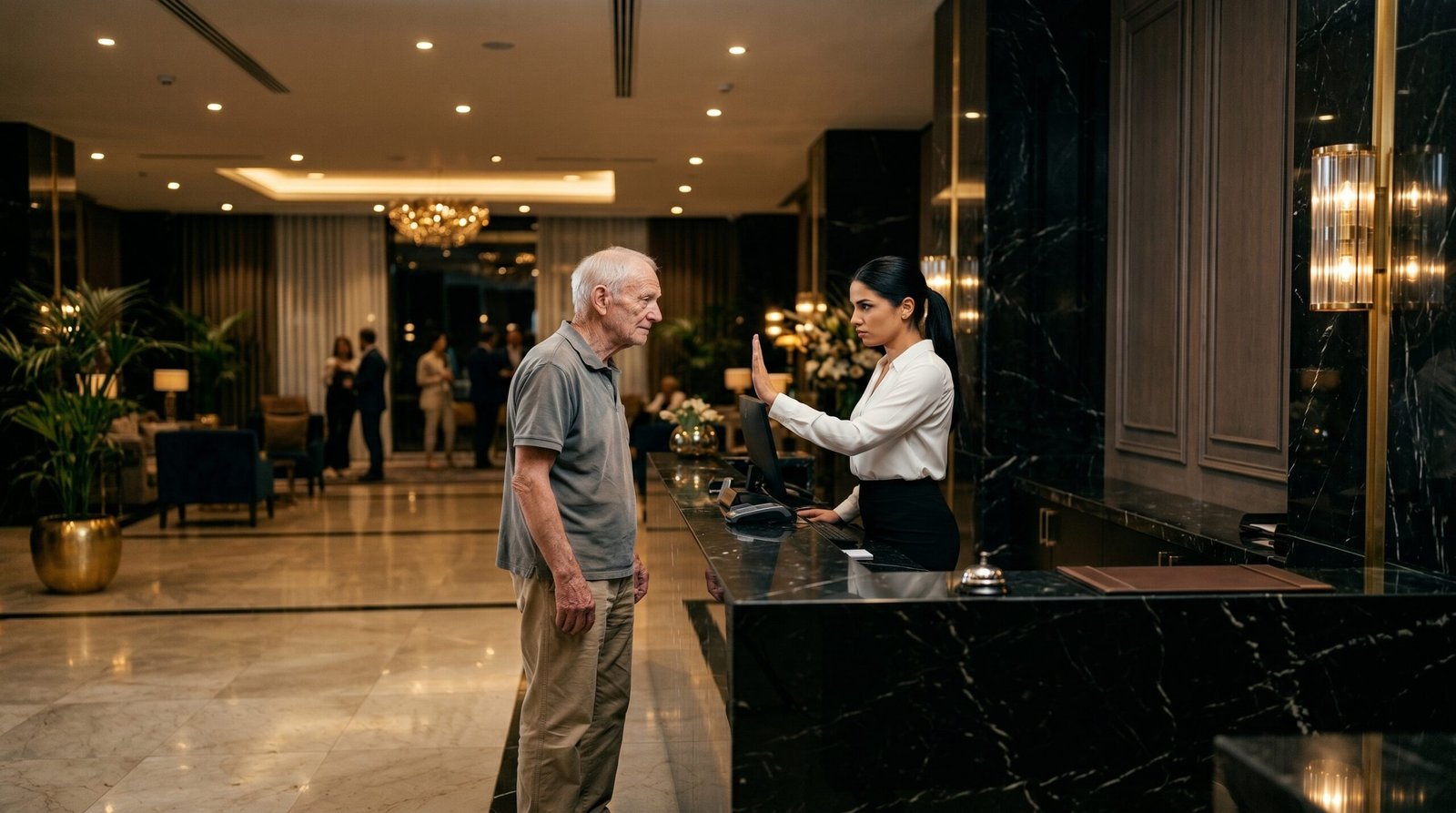 «El protocolo de seguridad es para proteger a los huéspedes de criminales, no para proteger a mis empleados de la humildad», sentenció el anciano, elevando un poco el tono de voz para que resonara en toda la sala.