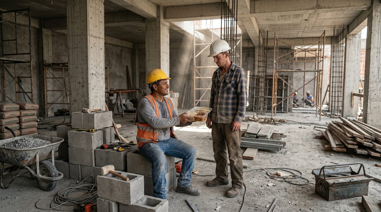 El sol del mediodía caía a plomo sobre la inmensa estructura de concreto y acero. El calor era sofocante, de esos que hacen que el aire tiemble sobre el pavimento. En medio del polvo y el ruido ensordecedor de las mezcladoras de cemento, José destapó su modesto recipiente de plástico. El aroma a arroz blanco, frijoles y un pequeño trozo de pollo guisado inundó el pequeño espacio que habían improvisado para descansar.