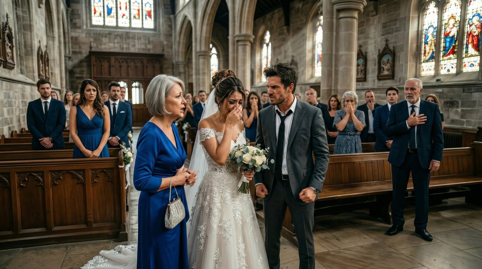 Cuando Mauricio levantó la mirada hacia el pasillo central, toda la sangre desapareció de su rostro. Sus rodillas empezaron a temblar tan fuerte que tuvo que apoyarse en el atril del sacerdote para no colapsar.