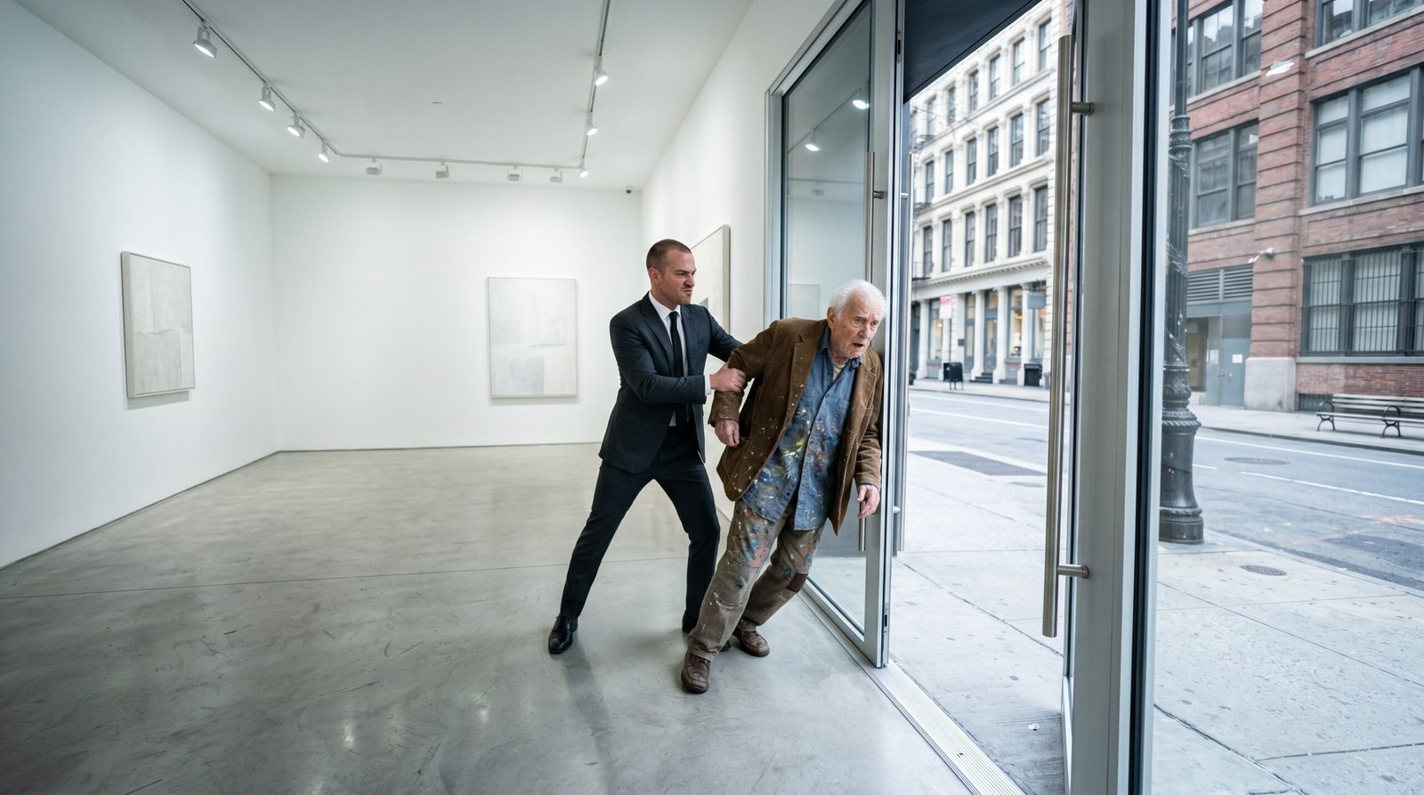 «Sal de mi galería, vagabundo. Estas obras maestras no son para que las mire la basura de la calle.»