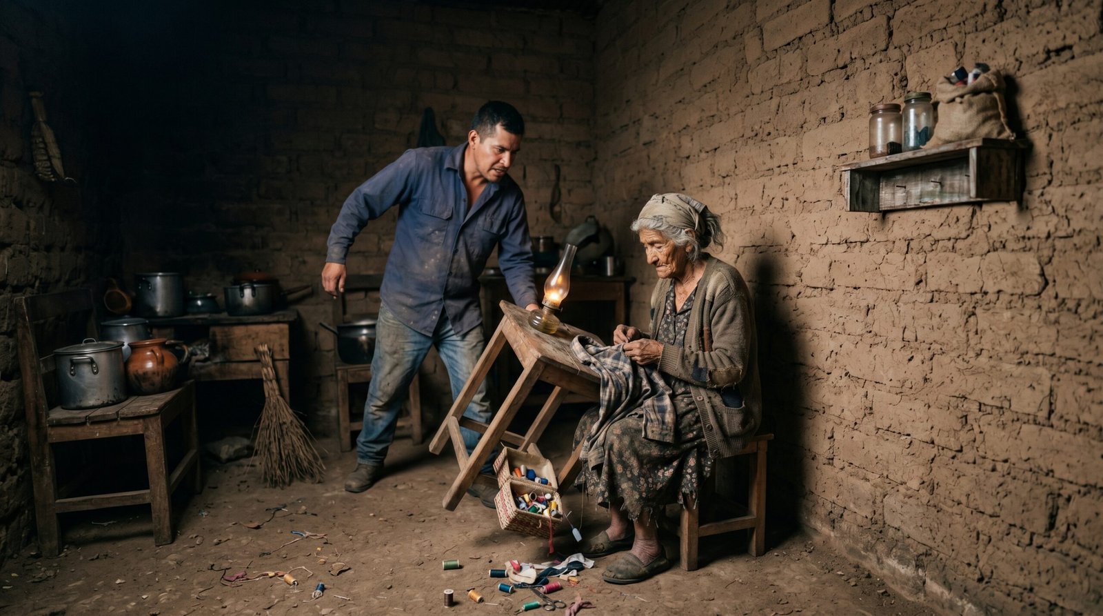 Doña Marta, de 96 años, siempre había sido una mujer fuerte. Fiel a su naturaleza práctica, no usaba anteojos, lo que dejaba sus ojos cansados totalmente al descubierto frente al monstruo en el que se había convertido su hijo. Tras negarse a entregarle el dinero, Rubén la agarró por los hombros y la lanzó con toda su fuerza. El impacto contra el piso de cemento fue devastador, dejándola inmovilizada por el dolor.