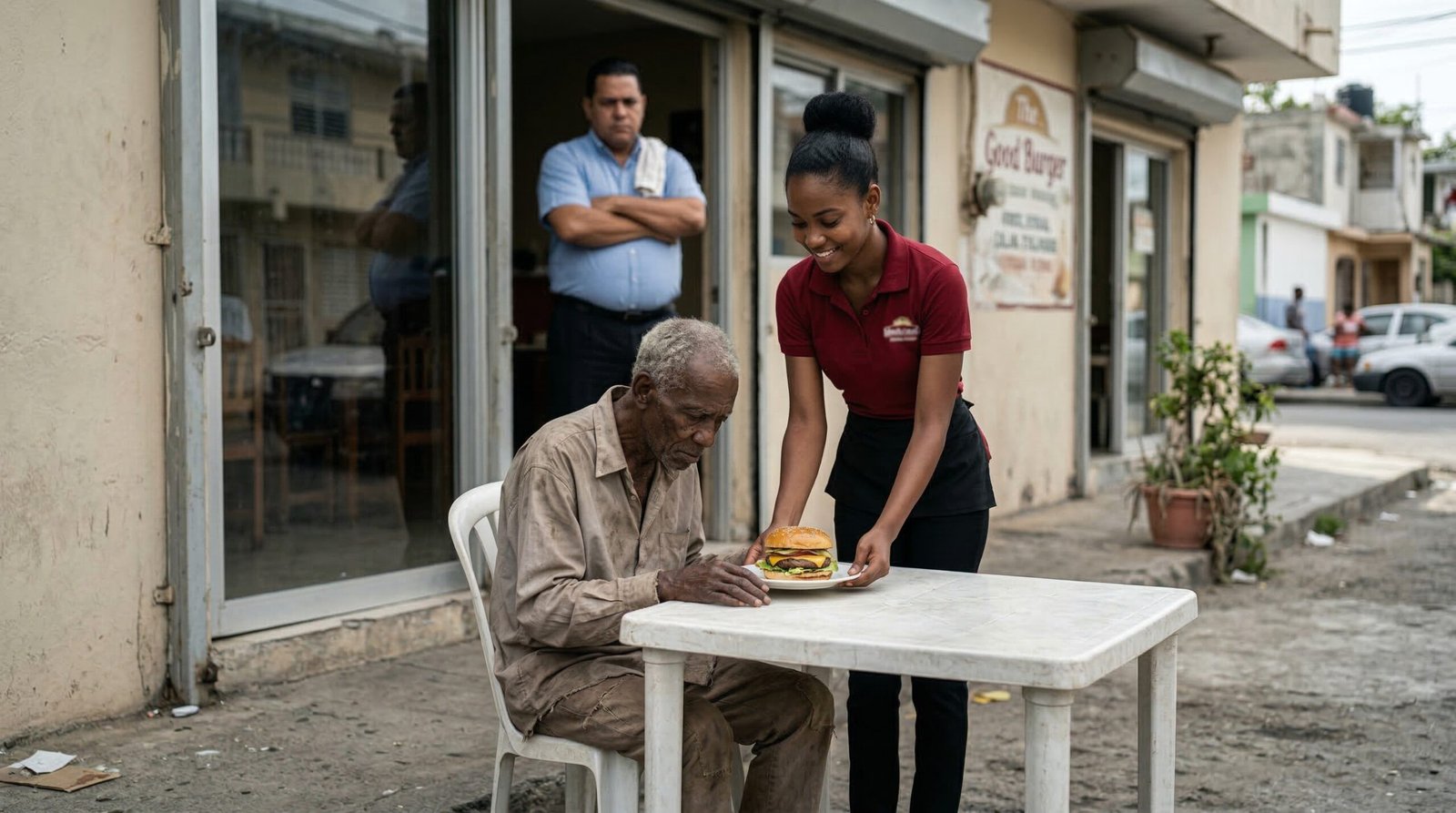 Todos los que estábamos sentados en las mesas de plástico observábamos la escena petrificados. La indignación me hervía en la sangre, subiendo por mi cuello hasta la cabeza. Quería gritar, quería levantarme y defender al anciano, pero una mezcla de conmoción y miedo al conflicto nos mantenía a todos clavados en las sillas. Era una sensación de impotencia terrible. El aire estaba tan tenso que nadie se atrevía siquiera a toser o a mover un vaso.