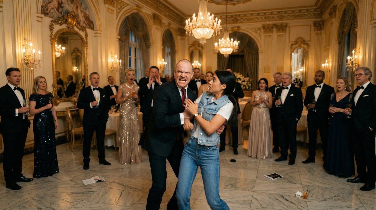 Roberto miraba el suelo como si deseara que la tierra se abriera y se lo tragara entero. Los pocos invitados que quedaban en la puerta observaban la escena en un silencio sepulcral, conteniendo la respiración.