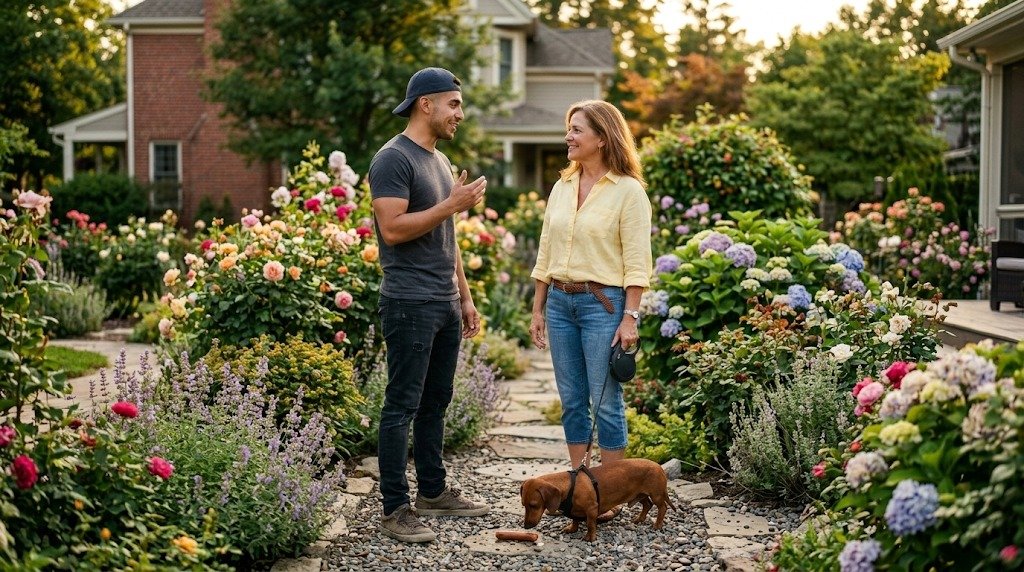 Pero lo que realmente me tenía congelado era la escena al otro lado del portón de metal de mi vecino.