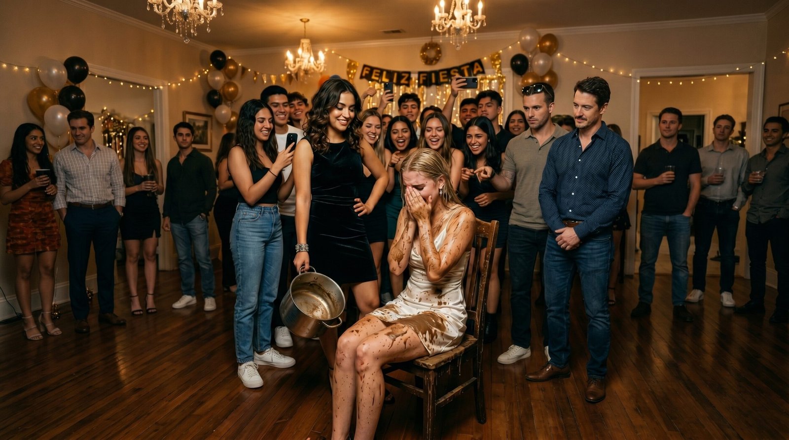 Andrea había soportado años de abusos por parte de sus «amigos» de la alta sociedad. Esa noche, la invitaron solo para usarla de burla. El empujón de Roberto fue la gota que derramó el vaso. Tirada en el lodo, con el olor a humedad pudriendo su ropa, Andrea los observó. Roberto, con su rostro sin barba, lideraba las risas. Los ojos de Andrea, libres de gafas y llenos de furia fría, memorizaron cada rostro que se burló de ella.