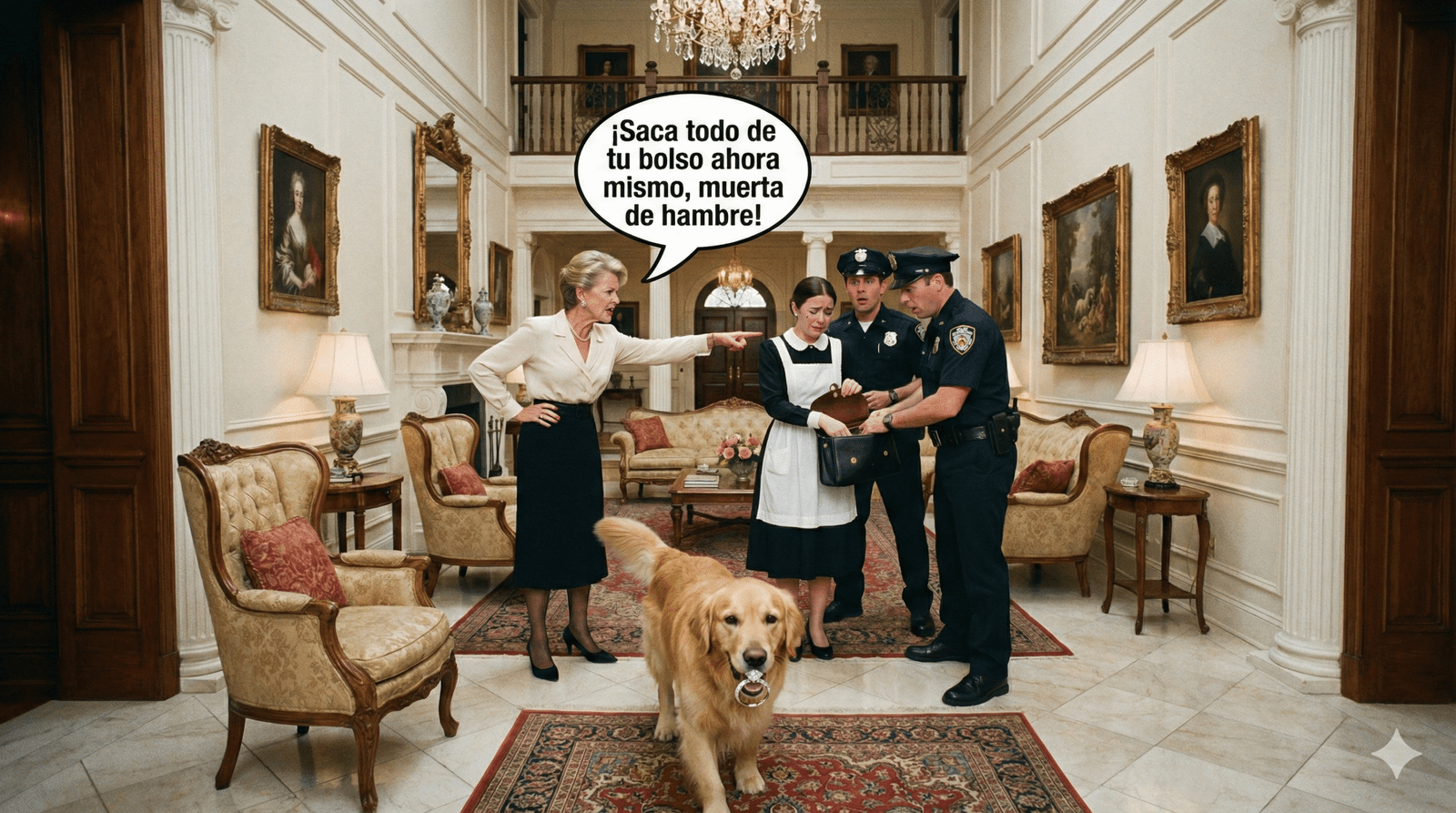 La tensión en la sala de aquella mansión era tan espesa que se podía cortar con un cuchillo. Hace apenas unos segundos, yo era una presunta delincuente, una ladrona que había traicionado la confianza de la familia para la que trabajé con amor durante cinco años. Las esposas frías estaban a centímetros de mis muñecas y la señora Elena me miraba con un odio que jamás olvidaré. Pero entonces, Duque, ese noble Golden Retriever al que yo misma alimentaba cada mañana, cambió el destino de todos nosotros.