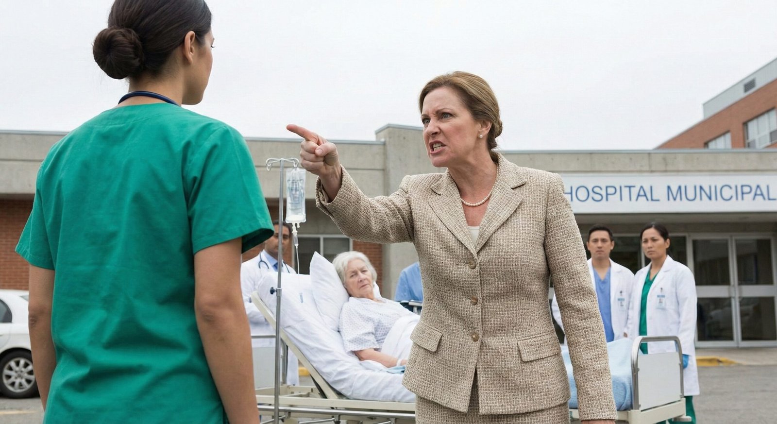 ¡Te damos la bienvenida si vienes desde Facebook! Sabemos que te quedaste con el corazón encogido en la banqueta, bajo la lluvia, viendo cómo una enfermera lo arriesgaba todo por no abandonar a una anciana que acababa de ser humillada y arrojada a la calle. Dejamos la historia en el momento exacto en que esa viejita frágil y supuestamente «sin papeles» sacó un teléfono de última generación para hacer una llamada misteriosa. Lo que estás a punto de leer no es una simple anécdota de hospital; es una magistral lección de vida, un thriller sobre el poder, el estatus y una venganza legal tan perfecta que te dejará sin aliento. Prepárate, porque la directora Miranda estaba a punto de descubrir que el piso de mármol que tanto presumía limpiar de «indigentes», en realidad tenía dueña.