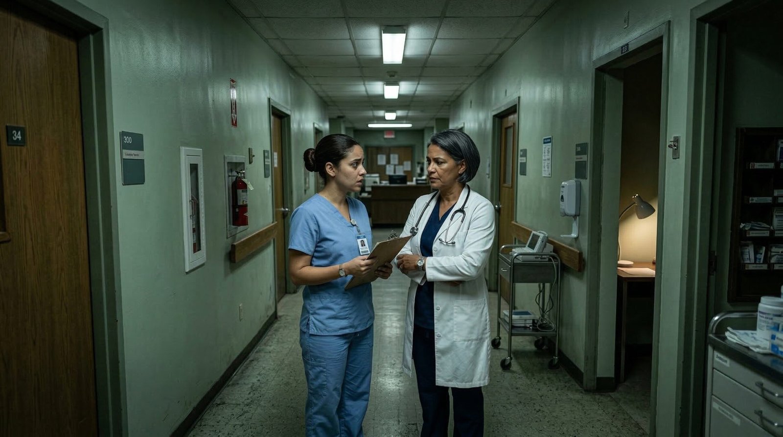 El pasillo del tercer piso estaba sumido en esa penumbra verde y enfermiza típica de los hospitales viejos durante el turno de madrugada. El silencio solo era roto por el parpadeo incesante de un tubo fluorescente a punto de fundirse y por la respiración agitada de la enfermera Núñez.