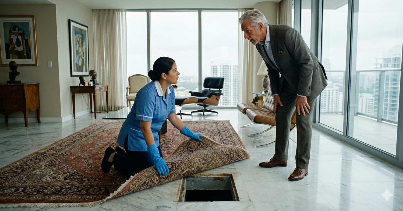 La limpiadora, que durante años solo fue «la mujer del uniforme azul», ahora sostenía el poder de destruir una fachada de lujo y estatus. Miró hacia la puerta de la sala. Nada. Miró la cerradura oxidada de la pequeña puerta subterránea. Sus manos temblaban. No era solo curiosidad; era una intuición profunda de que su destino estaba ligado a lo que yacía bajo el mármol de esa mansión de alta gama.