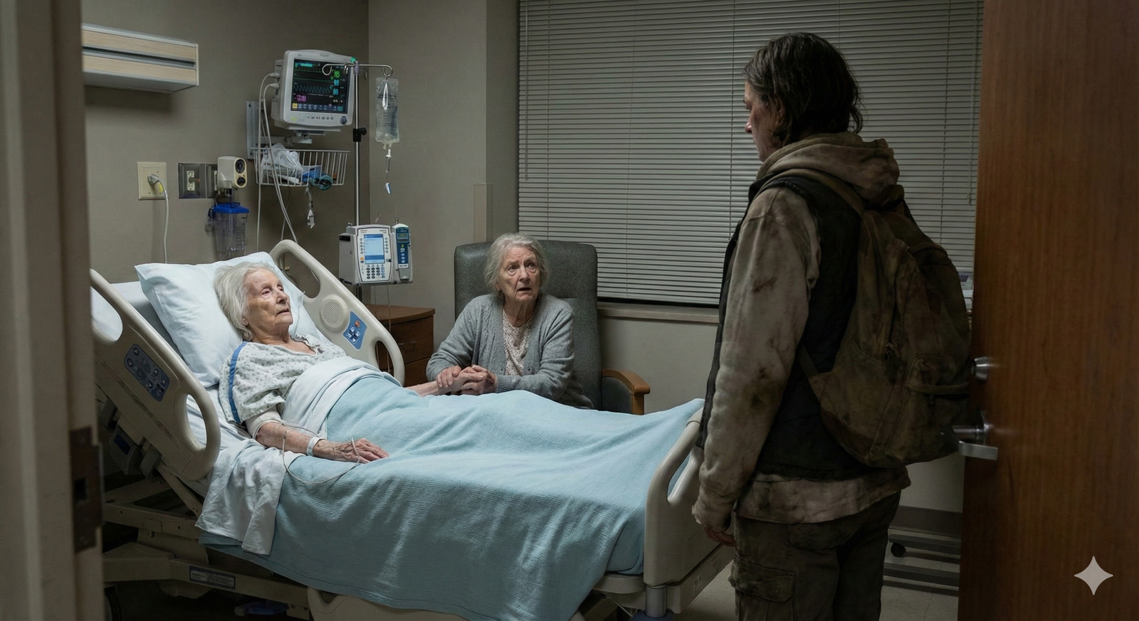 Cuando el vagabundo entró en la habitación, el olor a calle chocó contra el aroma a desinfectante. Pero Lucía, en un arranque de desesperación que ni ella misma entendía, detuvo al guardia de seguridad.