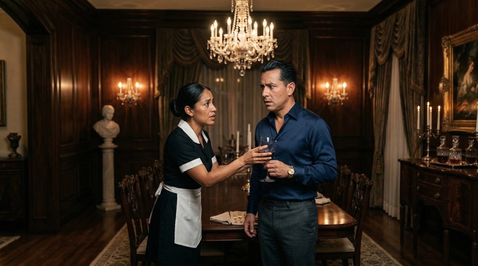 La sirvienta, que había estado limpiando la platería en el cuarto contiguo, había visto a través del reflejo del gran espejo del pasillo cómo Valeria, con manos temblorosas, vertía el contenido de un pequeño frasco en la copa de su esposo, removiendo frenéticamente con una cucharilla de plata antes de volver a sentarse con una sonrisa ensayada.