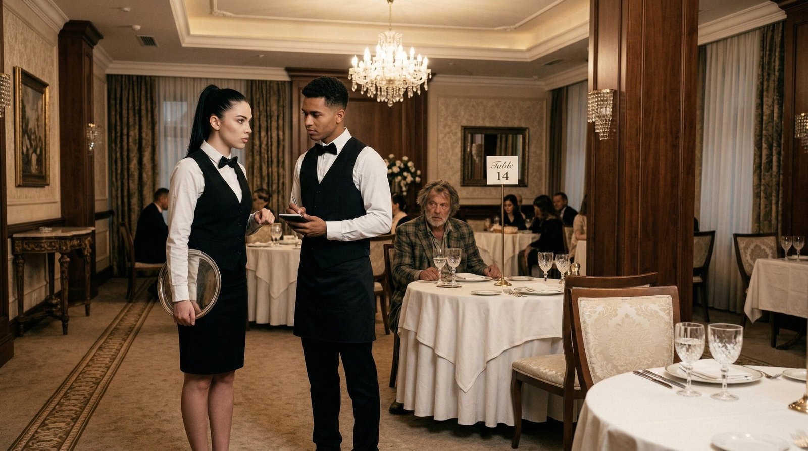 En medio de ese paraíso de opulencia, Mateo, el joven mesero de veintidós años, caminaba de regreso hacia la estación de servicio. Sus manos, habitualmente firmes, temblaban ligeramente. Aún sostenía su pequeña libreta negra, procesando la orden que acababa de recibir.