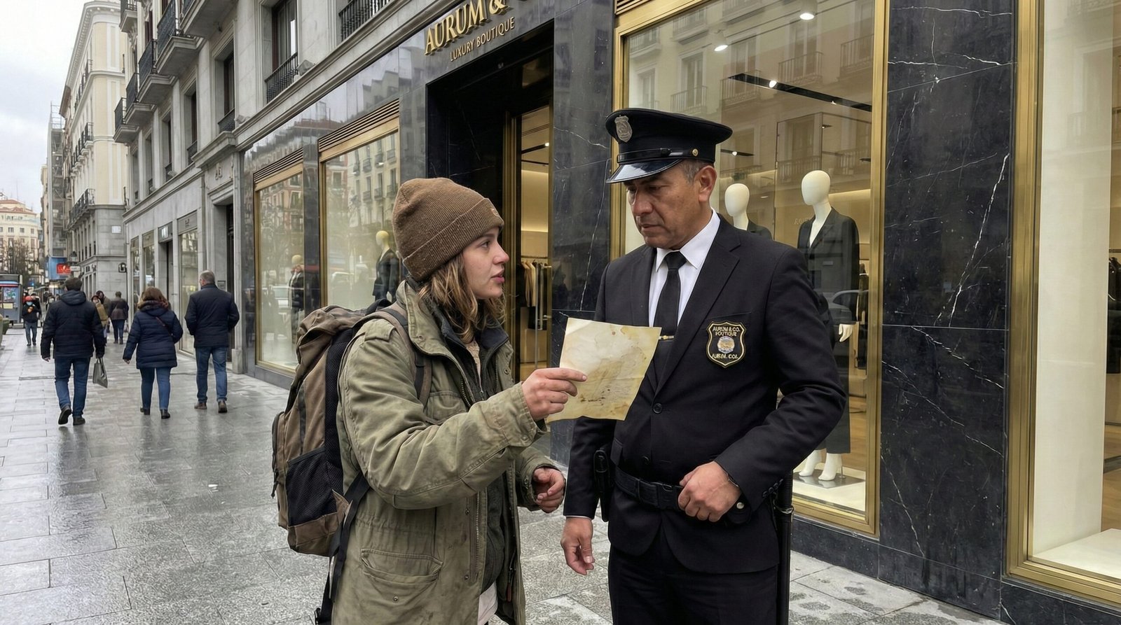 El tiempo pareció congelarse en aquella exclusiva calle comercial. Los transeúntes, vestidos con abrigos de diseñador y bolsos de miles de dólares, pasaban de largo sin prestar atención a la mendiga, ignorando el milagro que estaba a punto de ocurrir frente a sus narices.
