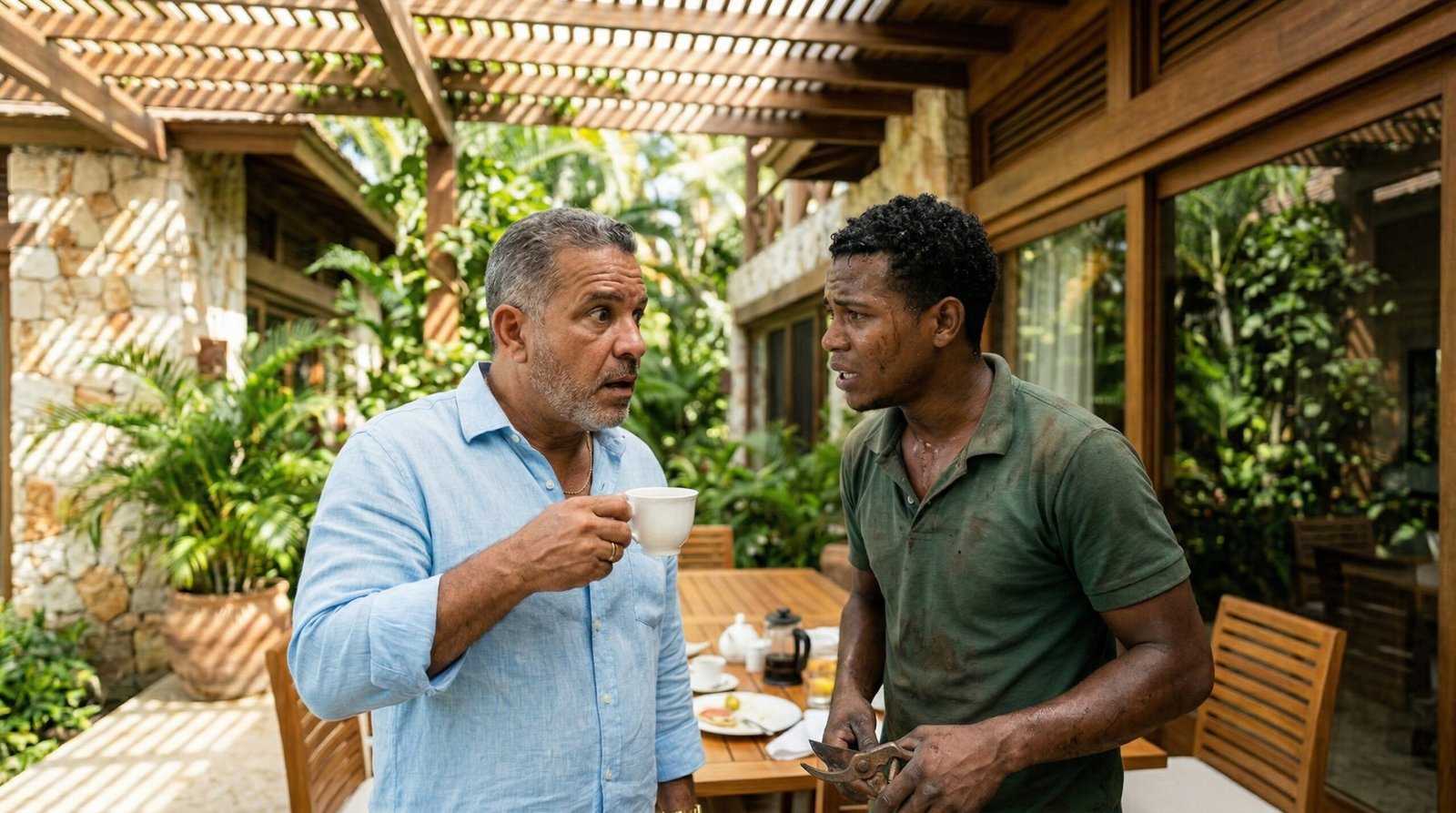 El tiempo pareció detenerse en aquel lujoso patio dominicano. El canto de los pájaros y el suave murmullo de la brisa chocando contra las hojas de las palmeras se desvanecieron. Para Roberto, un empresario millonario acostumbrado a tomar decisiones difíciles bajo presión, el mundo entero se redujo al diámetro de esa pequeña taza de porcelana blanca que sostenía en su mano derecha.