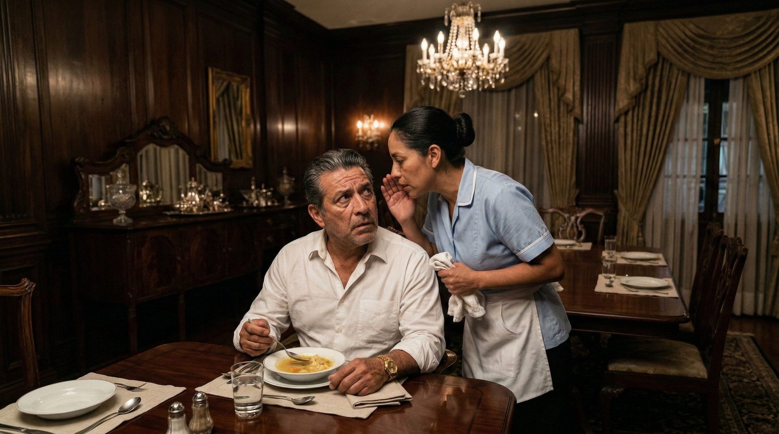 Don Pedro tragó saliva. El orgullo le exigía echar a María a la calle en ese mismo instante, pero su instinto de supervivencia, el mismo que lo había salvado de feroces lobos de Wall Street y despiadados rivales de negocios, le pedía precaución. Se inclinó sobre la sopa de pollo. A simple vista, parecía normal. Pero al acercarse más, bajo la cálida luz de la lámpara de cristal, lo vio.