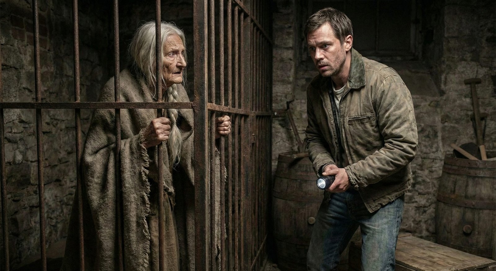 Volver a bajar a ese sótano fue el acto más difícil de su vida. Cada escalón crujía como una advertencia. Al llegar a la celda, la anciana se arrastró hacia los barrotes. Al ver a Lucas regresar, no lloró. Suspiró con un alivio que helaba la sangre.