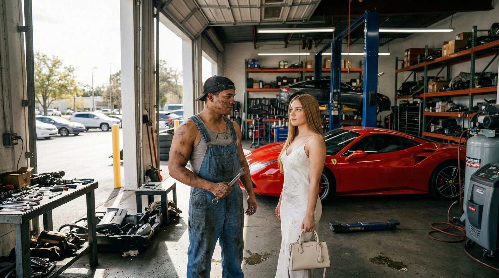 Diana vive vigilada. Cada vez que llevaba su auto al taller de Carlos, no lo hacía porque el motor fallara; lo hacía porque Carlos era el único lugar donde se sentía humana. Carlos, con sus manos manchadas de grasa y su sonrisa honesta, representaba todo lo que ella no podía tener: libertad.