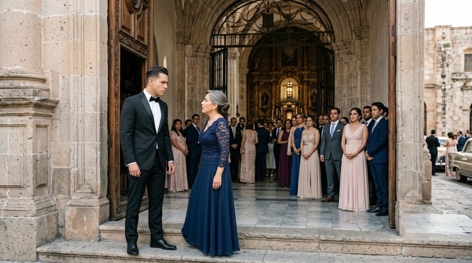 ¡Hola! Si vienes de Facebook, prepárate para la verdad que nadie vio venir. Te quedaste en ese momento exacto y desgarrador en el que Carmen, sola y humillada, miraba cómo las pesadas puertas de madera de la iglesia se cerraban en su cara. Su propio hijo, el niño por el que había sacrificado su vida entera, acababa de negarla para complacer a una familia de ricos estirados. Pero lo que Carlos no sabía es que la mujer que acababa de echar a la calle era la verdadera dueña de su destino. Sigue leyendo, porque la venganza que se desató ese día hizo temblar a toda la alta sociedad.
