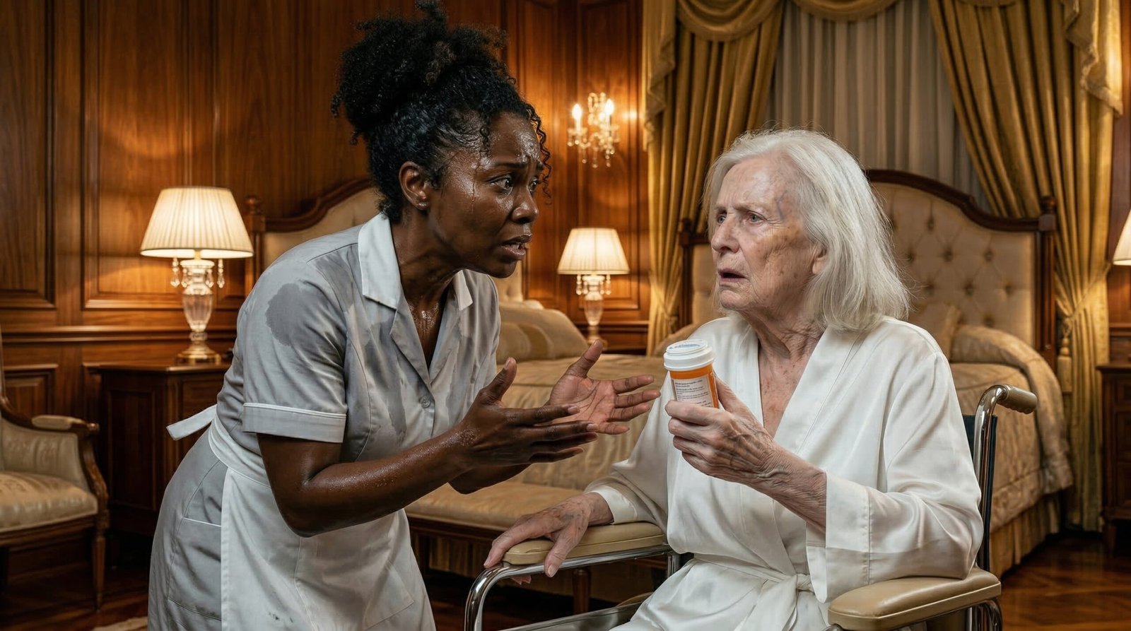 Rápidamente, agarré lo primero que tuve a mano: la pesada lámpara de bronce de la mesa de noche, justo al lado de donde había escondido la cámara. Me puse delante de la cama de mi abuela, bloqueando cualquier acceso hacia ella. Mis manos temblaban, pero mi determinación era absoluta. Nadie iba a lastimar a la mujer que me crió.