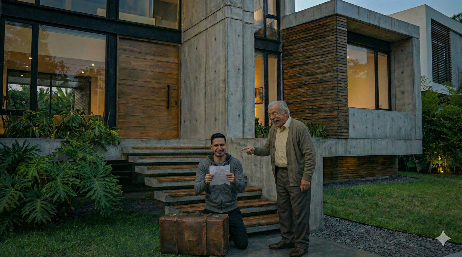 El papel se sentía pesado en mis manos, o quizás eran mis manos las que no tenían fuerza para sostenerlo. Las luces azules y rojas de las patrullas rebotaban en la fachada de la casa, esa casa que yo creía mía y de la que hacía apenas media hora había expulsado a mi propio padre como si fuera basura.