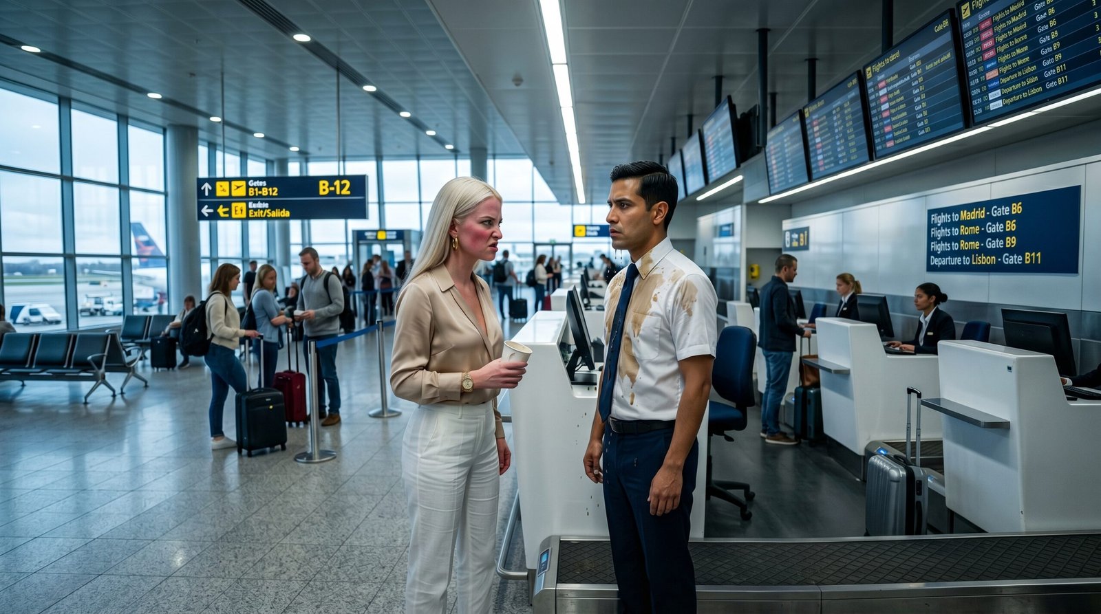 El hombre no se inmutó. Su rostro liso y su mirada directa jamás reflejaron miedo. Lo que la influencer ignoraba en su ataque de furia era que estaba gritándole al fundador y director ejecutivo del conglomerado de aerolíneas, quien frecuentemente trabajaba de incógnito en los mostradores para evaluar el servicio de su propia empresa. Con un movimiento calmado, el CEO tecleó en el sistema de seguridad central del aeropuerto, anulando no solo el pase de abordar de la mujer, sino su perfil completo en la base de datos de aviación.
