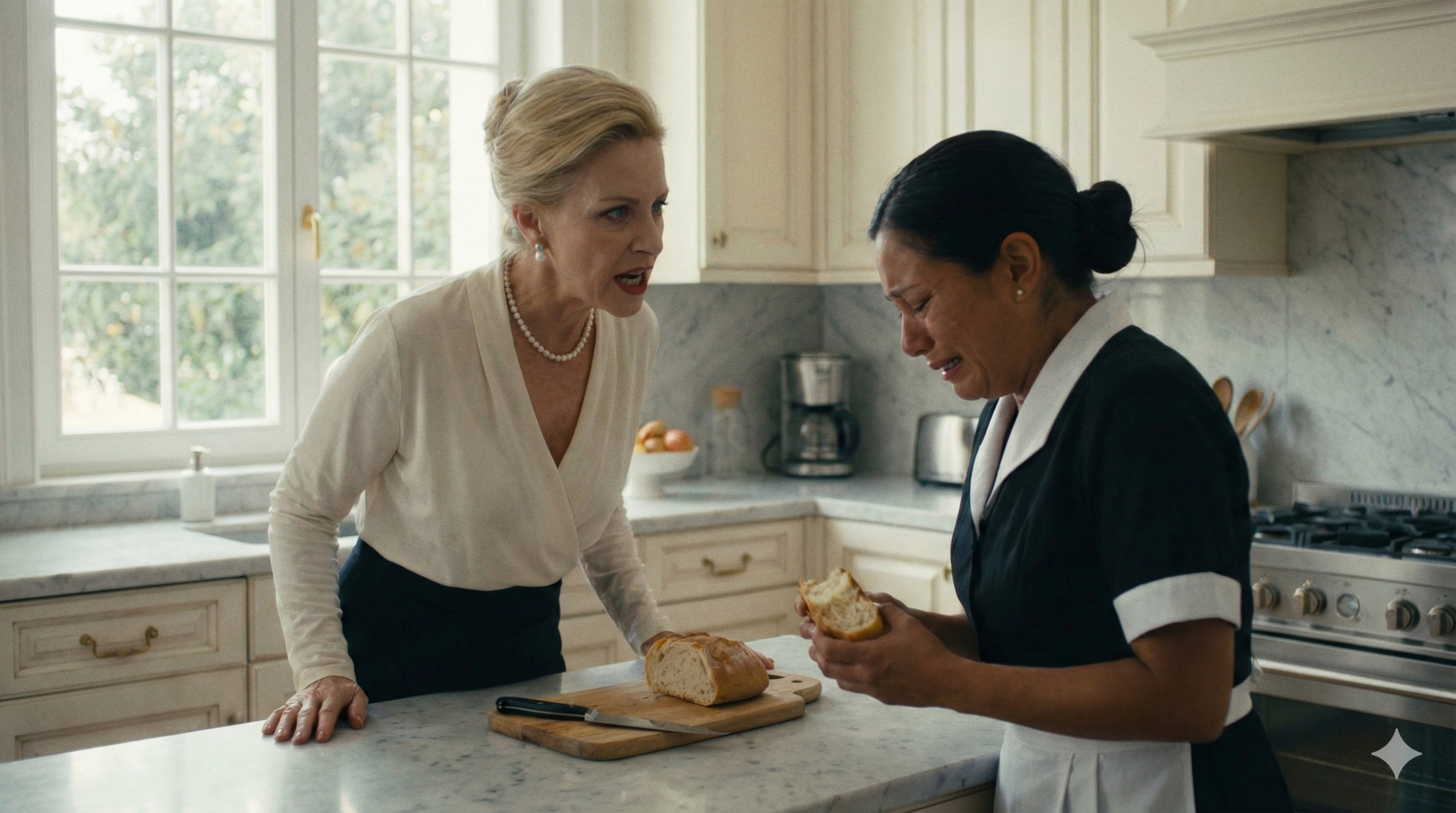 La imagen de Elena gritando «¡Ese pan es para el perro!» todavía resuena. Pero lo que sucedió a la mañana siguiente en esa cocina de lujo no fue un simple despido, fue una lección de vida que nadie en esa casa olvidará jamás.