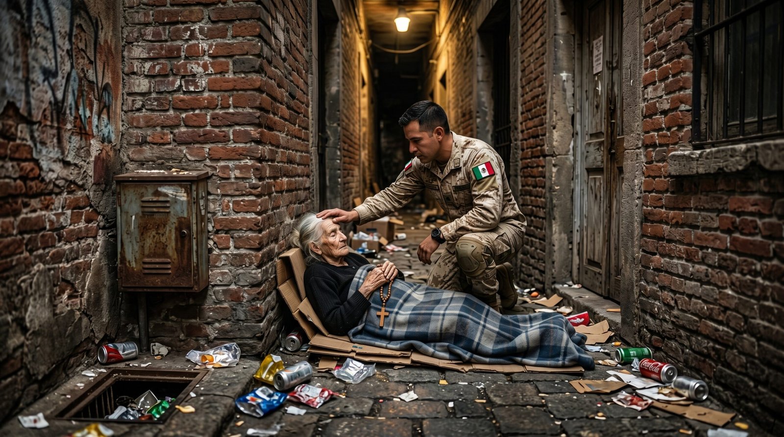 La fría brisa del callejón golpeaba el rostro limpio y rasurado del soldado. Acababa de regresar de una dura misión, esperando encontrar el calor de su hogar, pero en su lugar encontró a la mujer que le dio la vida tirada entre los escombros. Mientras envolvía a su frágil madre de 98 años con la manta a cuadros, la tristeza en su mirada, totalmente libre de lentes, se transformó rápidamente en una ira incontrolable. La anciana, apretando su rosario de madera, era la prueba viviente de la traición más asquerosa.