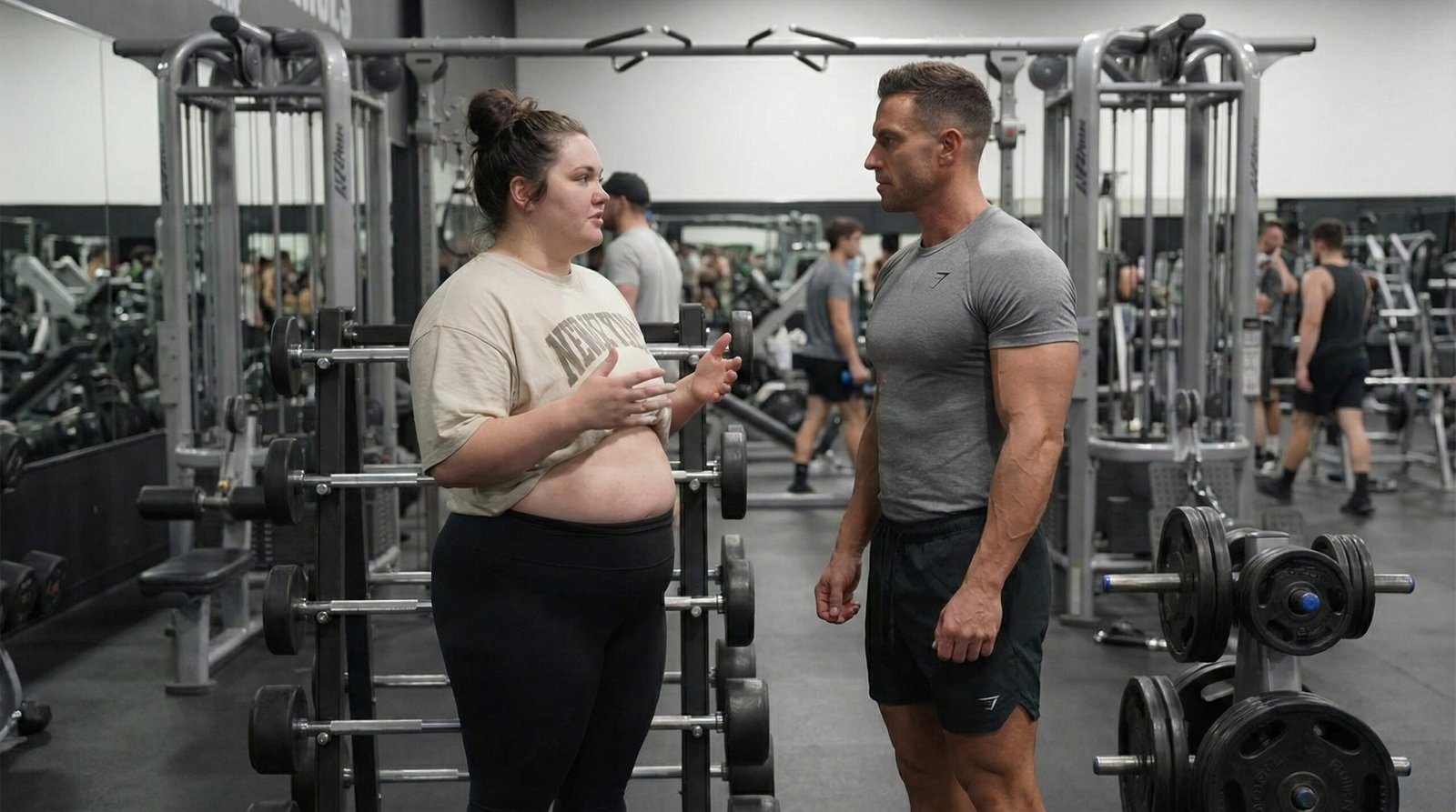 El silencio en el gimnasio era tan profundo que se podía escuchar el zumbido de las luces fluorescentes y la respiración agitada de Carlos. La música electrónica que solía retumbar había muerto, y con ella, la valentía del entrenador estrella.