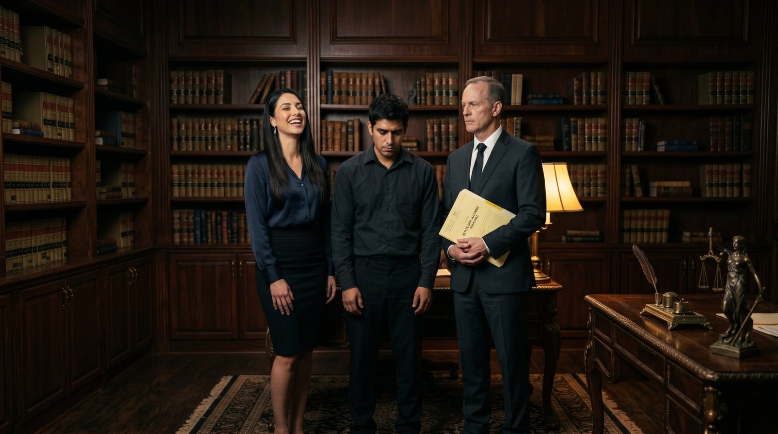 Nadie se movió. El silencio fue absoluto e incómodo. Pablo no levantó la cabeza, su rostro completamente afeitado se mantuvo petrificado. Silvia terminó su frase y guardó un silencio sepulcral. Fue entonces cuando el abogado, también sin un solo pelo en la cara y con los ojos descubiertos, clavó su mirada fría en la mujer. Con una voz formal y cortante que retumbó en la madera de la oficina, soltó el golpe mortal.
