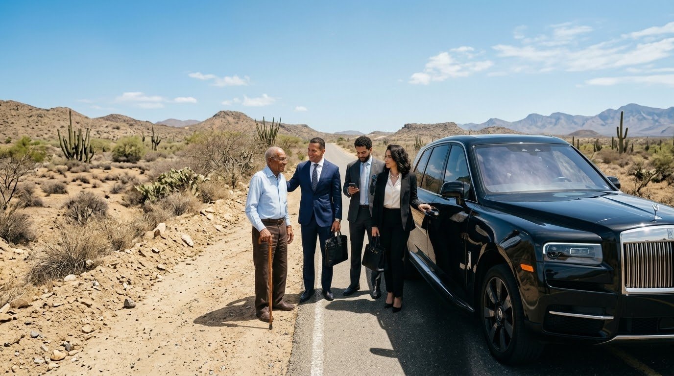 Mientras los observaba, un dolor profundo, ajeno al calor del desierto que aún sentía en la piel, me invadió el pecho. No era un dolor físico, era el dolor del alma. Recordé cada sacrificio, cada noche sin dormir construyendo mi empresa de transportes. Empecé con un solo camión viejo, manejando yo mismo por carreteras peligrosas, comiendo mal, durmiendo poco, todo para asegurarles un futuro. Para que no les faltara nada.