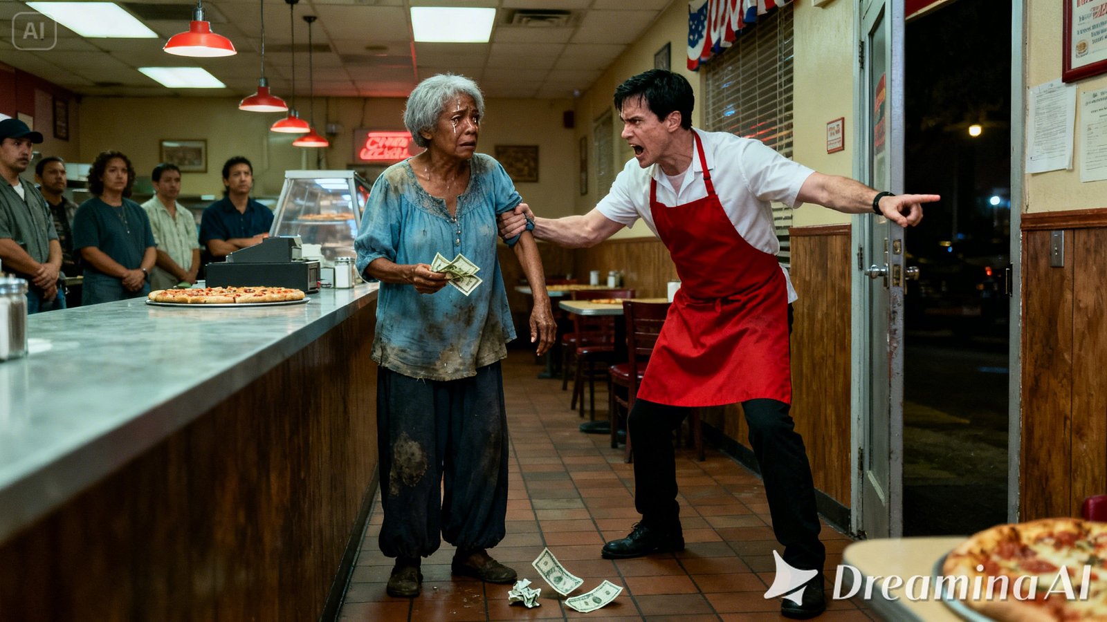 El momento exacto en el que el pizzero levantó la voz contra la anciana de 62 años todavía retumbaba en las paredes del local. Algunos clientes dejaron caer los cubiertos; otros miraron hacia otro lado, incómodos, como si la vergüenza les quemara por dentro.