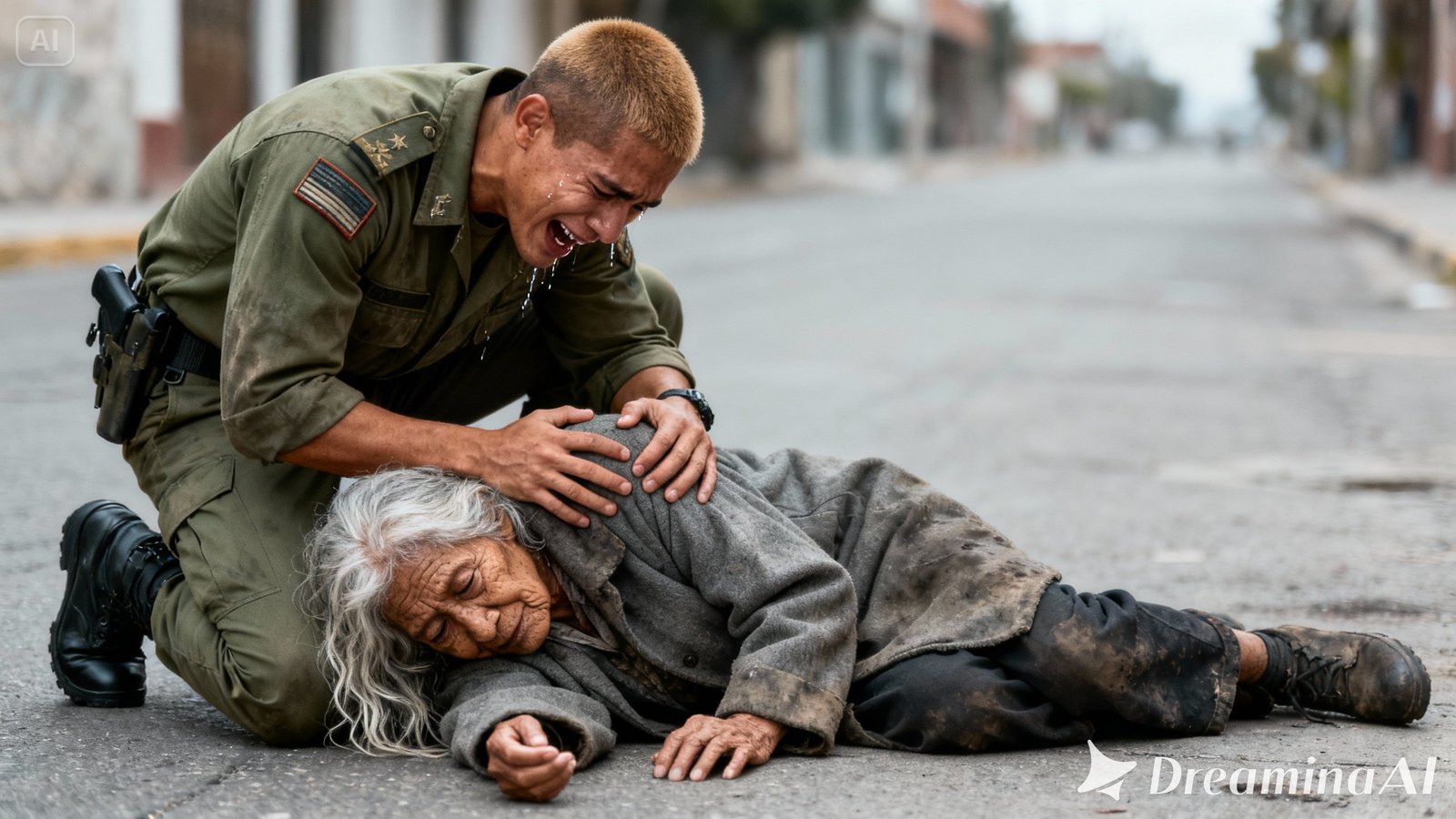 Si llegaste aquí desde Facebook, sabes que la historia se quedó en el momento más tenso: un militar arrodillado en el suelo, temblando, al descubrir que la anciana tirada en la acera… era su madre. Prepárate, porque aquí vas a conocer toda la verdad, lo que pasó después de ese grito desesperado y cómo una decisión lo cambió todo.