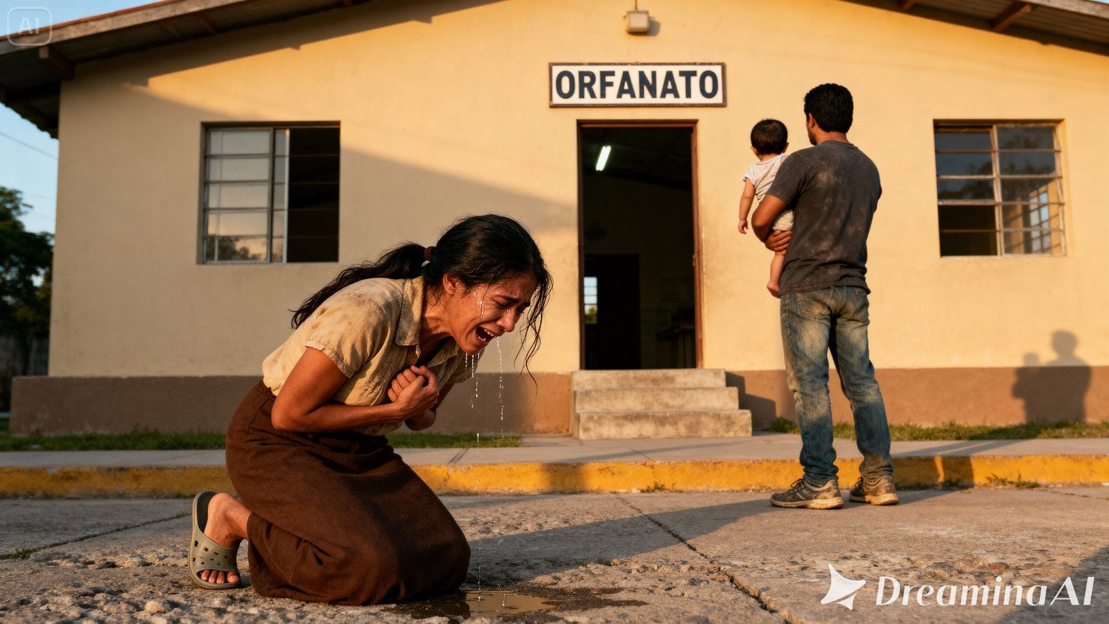 Si llegaste aquí desde Facebook, sabes que la historia se quedó en el momento más tenso: una madre de rodillas, gritando frente a un orfanato mientras su esposo se alejaba con el niño en brazos.